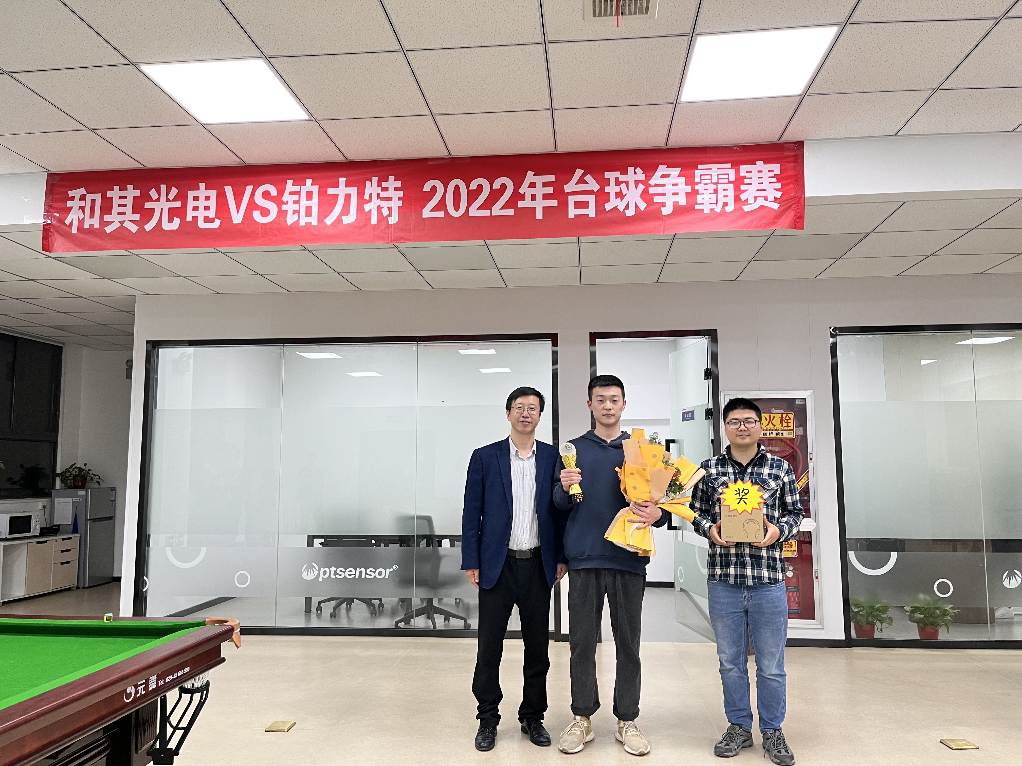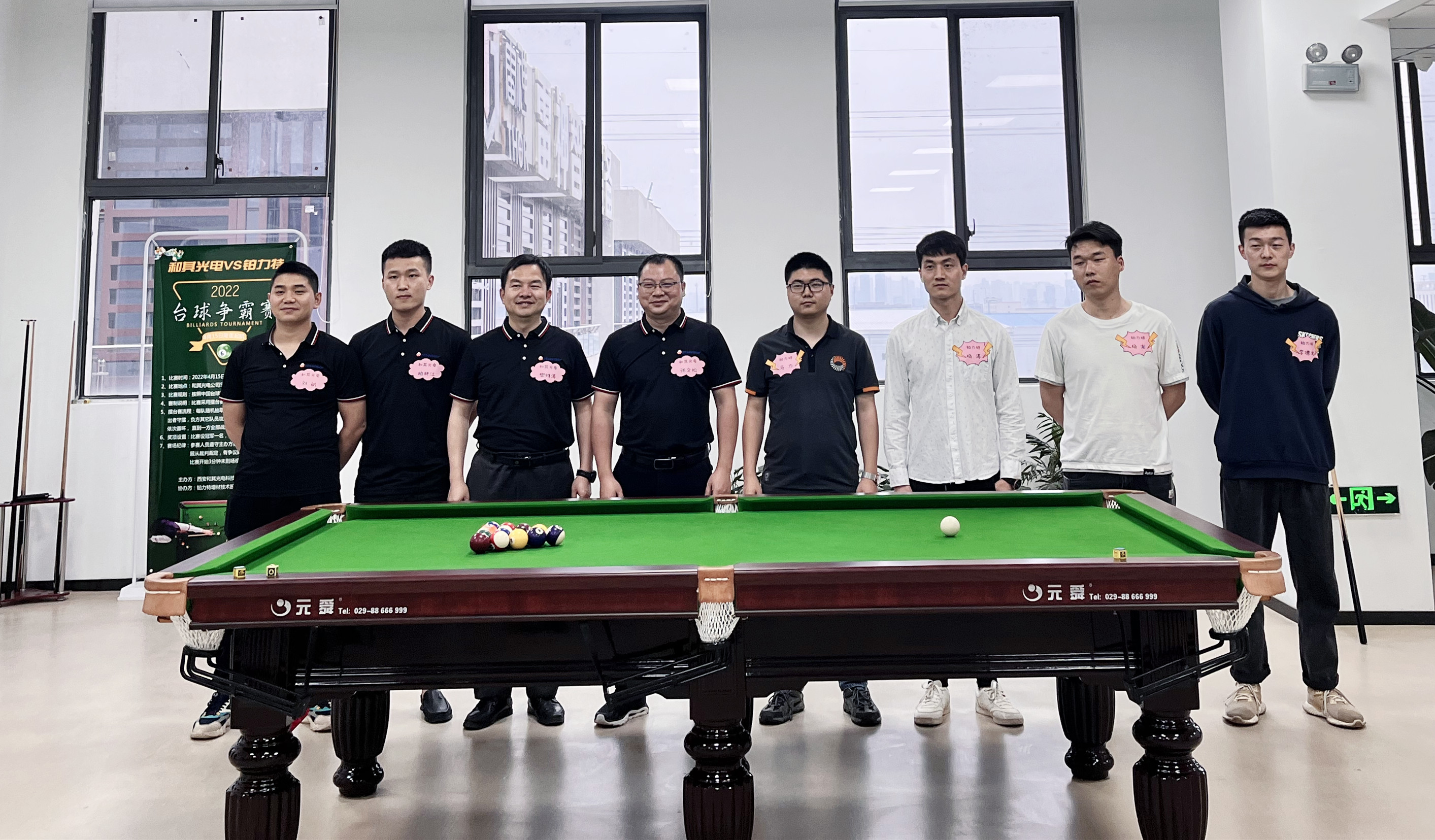為進(jìn)一步增強(qiáng)和其光電與鉑力特兩家公司的友好情誼,促進(jìn)兩家公司互動(dòng)交流。2022年4月15日18:00,和其光電VS鉑力特首次友誼賽——臺(tái)球爭(zhēng)霸賽正式開(kāi)賽。